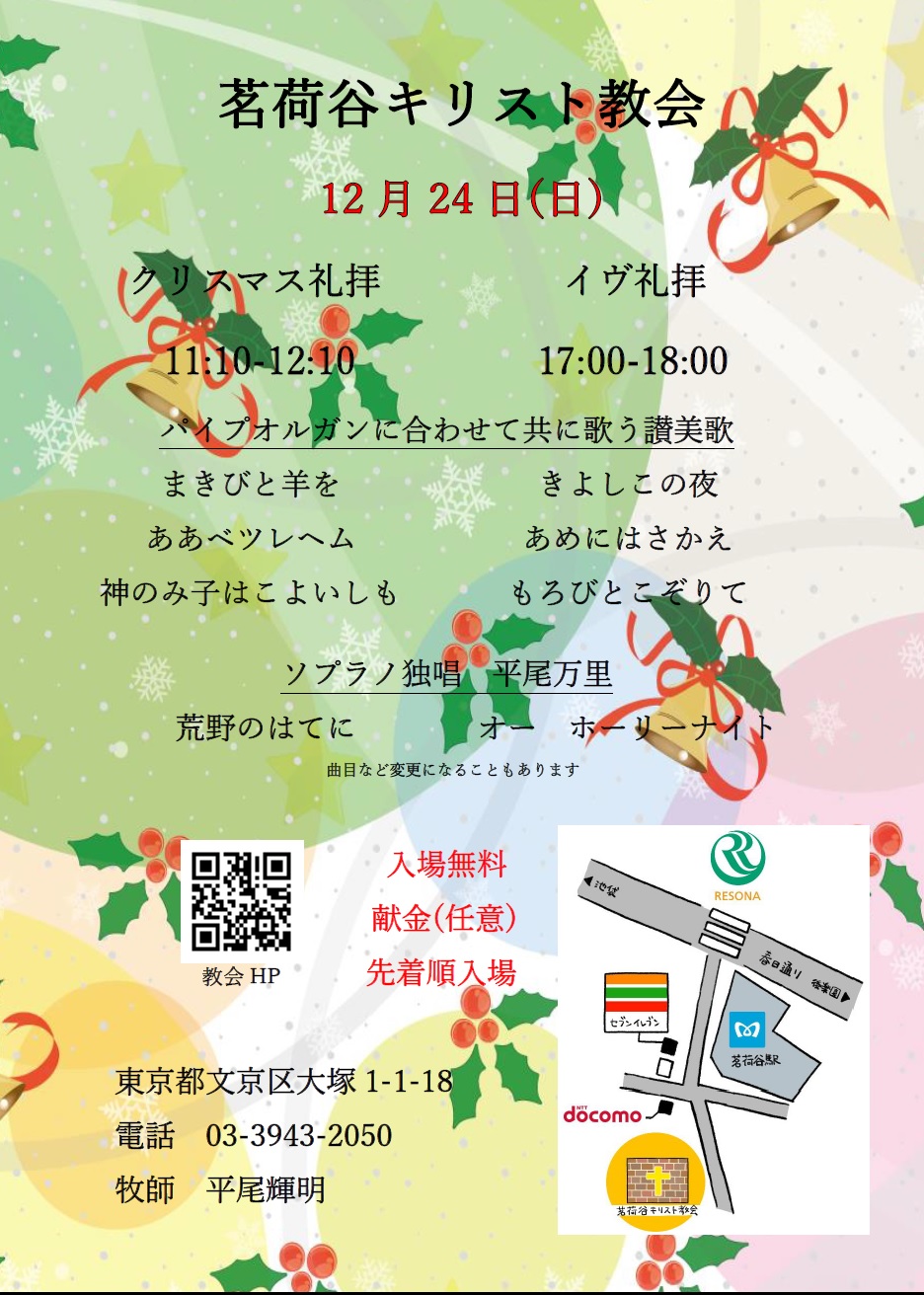 05Dec2023 2023年クリスマス Tweet Share Hatena Pocket RSS feedly Pin it 12月24日11:10よりクリスマス礼拝 17:00よりイヴ礼拝 Tweet Share Hatena Pocket RSS feedly Pin it 2024年6月23日オープンチャーチコンサート 最近のお知らせ一覧お知らせ一覧 2024年6月23日オープンチャーチコンサート 2024.03.28